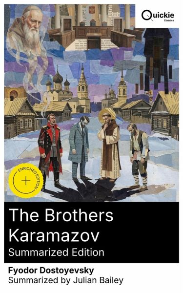 The Brothers Karamazov (Classic Unabridged Edition) crowns Dostoevsky's inquiry into faith, freedom, and guilt, structured around the parricide of Fyodor Pavlovich. Through Dmitri, Ivan, Alyosha, and Smerdyakov, it stages a polyphonic argument on theodicy and responsibility. Dialogic set pieces-from Zosima's teachings to the Grand Inquisitor-braid courtroom realism with mystical reflection, while the setting registers late-Imperial legal reforms and spiritual unease. The unabridged text preserves the full architecture and epilogue. Composed after Siberian imprisonment, epilepsy, debts, and the polemical 1870s, Dostoevsky channels a lifetime of crisis and confession into his final novel. Orthodoxy and European rationalism contend in his imagination, as do new jury trials he closely followed; he even planned a sequel centered on Alyosha. The book gathers strands from Notes from Underground, The Idiot, and Demons into a more capacious moral and psychological design. This unabridged edition is indispensable for readers seeking fiction that tests ideas in the crucible of character. It rewards study in theology, ethics, and law as much as it engrosses general audiences, and its ironies repay rereading. Begin for the trial, stay for the searching conversations of the soul: few novels confront modern skepticism and longing with such disciplined, unsettling, and humane clarity. Quickie Classics summarizes timeless works with precision, preserving the author's voice and keeping the prose clear, fast, and readable-distilled, never diluted. Enriched Edition extras: Introduction · Synopsis · Historical Context · Author Biography · Brief Analysis · 4 Reflection Q&As · Editorial Footnotes.