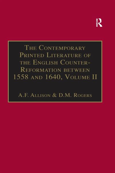 This is an annotated bibliography of Catholic books in English printed abroad or secretly in England at a time when Catholic printing was prohibited in England and such books, when discovered by the authorities, were seized and destroyed. It includes all the 930 items listed in the authors' A Catalogue of Catholic Books in English..., 1956 (A&R) except for a handful which, for reasons of consistency, were described in volume I of the present work (Scolar Press, 1989), and it adds a further twenty-five on which information has come to light more recently. The annotations, historical, literary and bibliographical, are very much fuller than those in A&R and include a vast amount of evidence now brought together for the first time. The true authors of many anonymous and pseudonymous books are identified and many books issued with a false imprint, or no imprint at all, are assigned to particular presses. In each entry, up to fifteen locations are given where known. A concordance links the entries with those in A&R to facilitate cross-reference from one to the other, and indexes of titles, printers and publishers, and persons (including foreign authors) mentioned in the text are provided. The volume concludes with a short list of Addenda and Corrigenda to volume I.