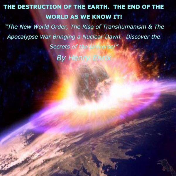 This book: The Destruction of the Earth by Henry Enrix tries to project to you an IMMINENT TRUTH that is more real than the air that you breath. If you are willing to open up your mind, God shall take off the thick scales that are covering your eyes, and You shall be able to understand your destiny, and know how to make the right choice. You shall have a tremendous understanding of the secret TRUTH hidden in plain sight of the world around you. You shall acquire the ability to distinguish between the TRUTH, and the lie. You shall be able to devise a plan for the near future, so you can escape this terrible destruction. You shall be able to choose your own destiny while still alive. As you might know, we are living our last days on earth, not the last days of our generation but the end of the world as we know it. Our home called "Earth" is going to be NOT RENEWED, BUT REPLACED! These are some of the events coming up to a city near you: 1. The Tribulation on Earth (The New World Order) a) Covit19 (the strategy to collapse the economies of the world) b) The Mark of the Beast (A Universal Control System) 2. The Great Tribulation on Earth Event (Nuclear Wars) a) World Famine, and Death (no more rain) b) Plagues, Pandemics, and Pestilences c) Over-Population Reduction by the Elite (Nuclear dawn) 3. The Apophis (God of Destruction) Asteroid Collapsing with Earth Event a) One Third of the Population of the World Being Wiped Out b) One Third of the Waters of the Oceans Being Turned Into Blood c) The Reduction of Light by the Sun, the Moon, and the Stars 4. The Bottomless Pit Being Opened (The Gates of Hell) a) Hell on Earth for Five Months b) Millions of People Dead by Smoke Inhalation, Smoke Produced by the Demons of the Pit 5. The Releasing of The Four Angels Under the Euphrates River: 200 Million People Dead, Chaos, and Total Destruction 6. The Armageddon War (The Apocalypse War) a) The Second Coming of the Messiah b) 200 Million People Slaughtered in One Day c) Streams, Lakes, Rivers, and Oceans Turn Bitter, or Into Blood d) The Sun Scorching People Away (the sun becomes super-hot) 7. The Leveling of The Earth by an Universal Earthquake (a truly flat earth) a) All Mountains Disappear, All Islands Disappear, All Canyons Disappear 8. The Falling Away of The Stars of The Heavens a) Millions Upon Millions of Meteorites (equivalent to nuclear bombs) Raining Down Over the Population of the Earth 9. The Old Earth Burning Up