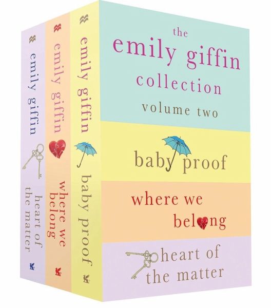 Available for the first time in this stunning electronic edition, THE EMILY GIFFIN COLLECTION: VOLUME 2 is sure to delight the blockbuster bestselling author's millions of fans. Includes: BABY PROOF Claudia Parr has everything going for her. A successful editor at a publishing house in Manhattan, she's also a devoted sister, aunt, and friend. Yet she's never wanted to become a mother-which she discovers is a major hurdle to marriage, something she desperately wants. Then she meets her soul mate Ben who, miraculously, feels the same way about parenthood. The two fall in love and marry, committed to one another and their life of adventure and discovery. All's well until one of them has a change of heart. Someone wants a baby after all. WHERE WE BELONG Marian Caldwell is a thirty-six-year-old television producer living her dream in New York City. With a fulfilling career and picture-perfect relationship, she has convinced everyone, including herself, that her life is just as she wants it to be. But one night, Marian answers a knock on the door . . . only to find Kirby Rose, an eighteen-year-old girl with a key to a past that Marian thought she had locked away forever. As Marian and Kirby embark on a quest to find the one thing missing in their lives, each will come to recognize that where we belong is often where we least expect to find ourselves. A place that we may have willed ourselves to forget, but that the heart remembers forever. HEART OF THE MATTER Tessa Russo is a stay-at-home mother of two young children and the wife of a renowned pediatric surgeon. Valerie Anderson is an attorney and single mother to six-year-old Charlie-a boy who has never known his father. Although both women live in the same Boston suburb, they are strangers to one another and have little in common, aside from a fierce love for their children. But one night, a tragic accident causes their lives to converge in ways no one could have imagined. This is the moving, luminous story of good people caught in untenable circumstances. Each being tested in ways they never thought possible. Each questioning everything they once believed. And each ultimately discovering what truly matters most.