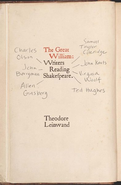 A unique literary journey through seven great writers' responses to Shakespeare-including Virginia Woolf, Allen Ginsberg, John Keats and more. No writer in the Western canon has been more influential on subsequent generations of writers than William Shakespeare. In The Great William, Theodore Leinwand explores how seven renowned writers-Samuel Taylor Coleridge, John Keats, Virginia Woolf, Charles Olson, John Berryman, Allen Ginsberg, and Ted Hughes-wrestled with this literary titan. What emerges is a constellation of remarkable intellectual and emotional encounters. Theodore Leinwand builds impressively detailed accounts of these writers' experiences through their marginalia, lectures, letters, journals, and reading notes. We learn why Woolf associated reading Shakespeare with her brother Thoby, and what Ginsberg meant when referring to the mouth feelof Shakespeare's verse. From Hughes's attempts to find a "skeleton key" to all of Shakespeare's plays to Berryman's tormented efforts editing King Lear, Leinwand reveals the palpable energy and conviction with which these very different writers engaged with Shakespeare. In uncovering these public and private reactions, The Great Williamreveals the inspired insights, intense vexations, and profound admiration these writers experienced while reading Shakespeare. A CHOICE Outstanding Academic Title Award-winner