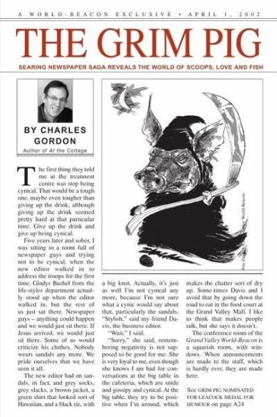Modern management has come to The World Beacon. This means that a new editor, Fred Morgan, has been sent to inspire everyone to get out and write newspaper stories that will matter to their readers, stories about their lives, their children, their careers and cloth. Cloth? Clearly, the new editor is making some unusual plans and Parker MacVeigh, our hero, senses an opportunity. Parker divorced, 40-ish is ready for serious career advancement. When his stories about cloth get him into Fred's good graces, and a local professor reveals that there are Saturnians among us, wreaking havoc, Fred puts him in charge of the top-secret Saturnian task-force. How Parker befriends the professor and turns his staff of Tony Fruscilla (hard-nosed young reporter) and Juanita Eldridge (soft-nosed Ivy League graduate) onto a real story is the stuff of well, of newspaper satire. For Uncle Bob, the legendary American evangelist and fishing trophy winner is coming to town, and the Chamber of Commerce expects millions of dollars to flow in as a result. The newspaper cast in this novel ranges from a man with a genius for creating the dullest headlines in the world to a freelancer who writes the stamp column under M.U. Cilage. Then there's Shirley Davis, Business Editor in her University of Manitoba sweater, Orville and Smokey, the old guys from type-setting, and, of course, the Russian immigrant cartoonist who keeps trying to slip in his cartoon of the Grim Pig, a confused combination of a pig and the grim reaper. This is delightful satire in the tradition of William Weintraub's Why Rock the Boat? and Evelyn Waugh's Scoop, and any similarity between this novel and a newspaper in a box near you is purely coincidental.