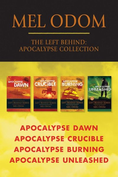 This collection bundles all 4 of Mel Odom's blockbuster Left Behind: Apocalypse novels into one e-book for a great value! #1 Apocalypse Dawn From the decks of U.S. Navy carriers patrolling the Mediterranean to Fort Benning, Georgia, and the dusty sands of the Turkish-Syrian border, this suspense thriller runs side by side with the phenomenal series that has sold more than 50 million copies. Characters and situations are added to those from the Left Behind series to raise the tension to a fever pitch. With technical accuracy from the same people who create best-selling military thrillers, this series will satisfy the fans of the Left Behind series who are looking for more. #2 Apocalypse Crucible Danger and personal crisis on land, sea, and air combine with a level of spiritual warfare that is unparalleled in a Christian book. Crucible is a page-turning thriller that runs side by side with the phenomenal Left Behind series. The world is exploding in confusion and terror following the disappearances in book one. Meanwhile, Army Rangers and Marine Special Forces are struggling to keep the peace, while fighting spiritual battles of their own in the sands of Turkey and back home. #3 Apocalypse Burning First Sergeant Samuel Adams "Goose" Gander is on the front lines, fighting a battle against superior forces. Goose's wife, Megan, is fighting for her freedom in a court case where all the facts seem stacked against her. Meanwhile, Chaplain Delroy Harte believes that the Rapture may have happened but can't be sure until he has dealt with the demons of his past. #4 Apocalypse Unleashed In this a much-anticipated conclusion to the Apocalypse series, First Sergeant "Goose" Gander of the United States Army Rangers is in over his head, and he knows it. Trapped by the Rapture in the carnage of Middle Eastern war, far from his wife and kid back home, he's living every day on the edge, afraid each moment might be his last, terrified that he'll never see the people he loves again. The war on the Syrian/Turkish border is heating up, and the opposition armies and the local warlords are skirmishing for power in a no-man's land filled with innocent victims that Goose hopes to protect. Goose soon discovers elements within his own forces, fearful of his leadership, are determined to bring him down. With everybody gunning for him, Goose is going to need a miracle to pull off his mission. Even as he struggles to believe in the God of miracles, Goose is about to discover the power of redemption and the bulwark of pure faith. And as the Hand of God closes over him and he accepts salvation, Goose Gander will finally find the peace he seeks, even as the war-torn land around him explodes in violence.