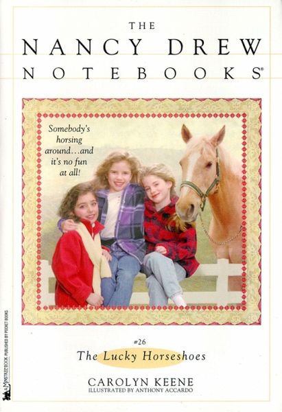 Nancy, Bess, and George are doubly excited. Not only are they taking horseback-riding lessons, but Bess is in the school spelling bee. And maybe her mom's lucky horseshoe earrings will help her win!