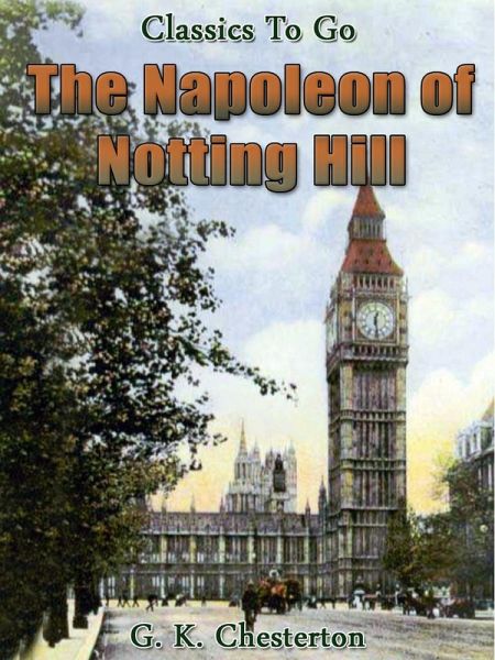 "The Napoleon of Notting Hill" is a novel by G.K. Chesterton in 1904, set in a nearly unchanged London in 1984. Although the novel is set in the future, it is, in effect, set in an alternative reality of Chesterton''s own period, with no advances in technology or changes in the class system or attitudes. It postulates an impersonal government, not described in any detail, but apparently content to operate through a figurehead king, randomly chosen. (Excerpt from Wikipedia)