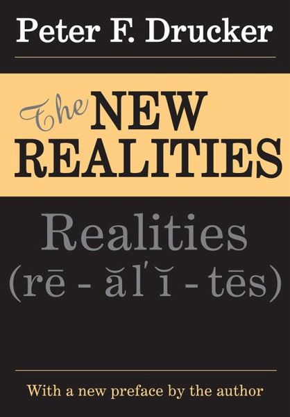 Even in the flattest landscape there are passes where the road first climbs to a peak and then descends into a new valley. Most of these passes are simply topography with little or no difference in climate, language, or culture between the valleys on either side. But some passes are different: they are true divides. History too knows such divides. Once these divides have been crossed, the social and political landscape changes; the social and political climate is different, and so is the social and political language. Some time between 1965 and 1973 we passed over such a divide and entered ""the next century.""Challenging, insightful, and provocative, Peter Drucker's The New Realities anticipates the central issues of a rapidly changing world. When it was initially published, in 1989, some reviewers mistakenly thought The New Realities was a book about the future, or in other words, a series of predictions. But, as indicated in the title, the book discusses realities. Drucker argues that events of the next thirty to forty years, or even further on, had already largely been defined by events of the previous half-century. Thus, Drucker discusses episodes in world history that had not yet happened at the time of the book's initial publication, such as: the archaism of the hope for ""salvation by society"" in ""The End of FDR's America""; the democratization of the Soviet Union in ""When the Russian Empire is Gone""; the technology boom of the 1990s in ""The Information-Based Organization""; and the evolution of management in ""Management as Social Function and Liberal Art.""Graced with a new preface by the author that discusses both reactions to the original publication of the book and how important it is for decision-makers to consider the past and present when planning for the future, The New Realities is mandatory reading for understanding politics, government, the economy, information technology, and business in an ever-chan