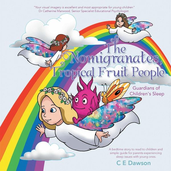 Author C E Dawson depicts the imaginative story of The Nomigranates who are tropical fruit people and guardians of childrens sleep. By day the Nomigranates live and go about their business on the clouds in Cloud Haven. When dusk falls, however, the Nomigranates descend to earth to protect children while they sleep. Bedtime can be a stressful time for children and parents, but bedtime may soon become a breeze with the idea of the Nomigranates standing by to do their job. This book is aimed to help parents create a bedtime that all young children will look forward to. The story of The Nomigranates, is an ideal accompaniment to any childs bedtime routine. It is poised to quickly become a favourite for parents, grandparents, godparents, aunts, uncles, child-minders and children. While getting to know the characters, children will learn about new types of fruit and will be encouraged to sleep easier at night, knowing the Nomigranates are watching over them all the while. Which Nomigranate will become your special guardian and can you guess what magic powers it has?