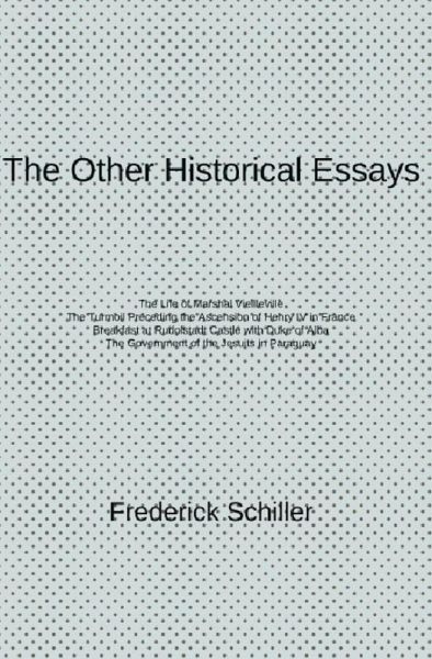 These historical essays were actually an occasion for Schiller to analyze, according to his own criteria, the greatness and frailties of past rulers. This profiling of men in command and their government are dealt in essays such as: "Memorable facts about the life of Marshall of Vieilleville", "History of the turmoil in France which preceded the ascension of Henry IV", "The government of the Jesuits in Paraguay", or "Overview of the most remarkable state events in the times of Emperor Frederick I". These essays are completed with other historical fragments and articles on the subject of Universal History.