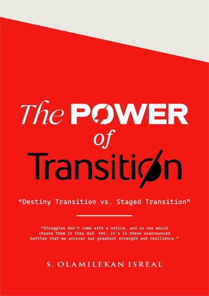 Understanding and Overcoming Struggles What if the secret to unlocking your future lies in success stories and understanding the hidden struggles of those who fell short? The Power of Transition is a groundbreaking exploration of life's pivotal moments, revealing how unseen forces shape our journeys and often determine whether we rise to greatness or fall by the wayside. Too often, we celebrate the victors, the leaders who overcame every obstacle but fail to acknowledge the profound lessons in the struggles of those who didn't reach the finish line. This book dares to shine a light on their stories, offering powerful insights into the challenges that define us. The Two Transitions That Shape Your Life: . Destiny Transitions: These are growth periods designed to align with your purpose and prepare you for greatness. . Staged Transitions: These struggles, imposed by external forces like societal systems, family dynamics, or spiritual influences, are designed to derail your path and keep you from your true potential. By understanding the difference, you'll learn how to navigate the maze of life's transitions with clarity and purpose. Why You Need This Book: Learn from All Stories: From unsung leaders who fell short to celebrated victors, uncover life lessons hidden in their paths. Break Free from Invisible Barriers: Understand how generational curses, societal systems, and unseen forces can shape or shatter destinies. Practical Tools for Transformation: Find actionable strategies to confront challenges and rewrite your life's narrative. Inspiration Beyond Success: This book redefines what it means to win by showcasing the value of every struggle. Whether you are at a crossroads in your career, facing personal challenges, or simply seeking clarity in a chaotic world, The Power of Transition offers the insight and inspiration you need to break free and embrace your destiny. Your journey isn't over. Your destiny is waiting. Will you take the first step? Let The Power of Transition inspire you to rise above the barriers, rewrite your narrative, and create a ripple effect of transformation for future generations. Don't just read this book, live it. Buy your copy today and unlock the keys to navigating life's transitions with courage and purpose.