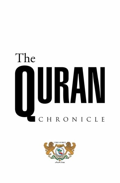 Thirty years after Prophet Mohammad's death, during the Othman Caliphate, it was decided to rearrange chapters of the Quran, forgetting surah 25, verses 32 - 33 and surah 17, verses 106 -107. Although the Quran says: "well-arranged stages, gradually and the best explanation...." Below shows how each chapter has been rearranged and read for fourteen centuries. The first chapter, which was revealed in 610 AD, is Chapter 96 in the Quran. Chronicle order/Chapter (Surah)#: 1st /96, 2nd /68, 3/73, 4/74, 5/1, 6/111, 7/81, 8/87, 9/92, 10/89, 11/93, 12/94, 13/103, 14/100, 15/108, 16/102, 17/107, 18/109, 19/105, 20/113, 21/114, 22/112, 23/53, 24/80, 25/97, 26/91, 27/85, 28/95, 29/106, 30/101, 31/75, 32/104, 33/77, 34/50, 35/90, 36/86, 37/54, 38/38, 39/7, 40/72, 41/36, 42/25, 43/35, 44/19, 45/20, 46/56, 47/26, 48/27, 49/28, 50/17, 51/10, 52/11, 53/12, 54/15, 55/6, 56/37, 57/31, 58/34, 59/39, 60/40, 61/41, 62/42, 63/43, 64/44, 65/45, 66/46, 67/51, 68/88, 69/18, 70/16, 71/71, 72/14, 73/21, 74/23, 75/32, 76/52, 77/67, 78/69, 79/70, 80/78, 81/79, 82/82, 83/84, 84/30, 85/29, 86/83, Year 622, Journey from Makkah to Medinah (Hejra) 87th /2, 88th /8, 89/3, 90/33, 91/60, 92/4, 93/99, 94/57, 95/47, 96/13, 97/55, 98/76, 99/65, 100/98, 101/59, 102/24, 103/22, 104/63, 105/58, 106/49, 107/66, 108/64, 109/61, 110/62, 111/48, 112/5, 113/9, last chapter, 114th /110 In this book, using Yousef Ali's English translation of the Quran, an original chronicle Quran is presented.