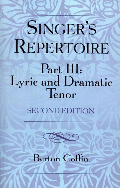Now in paperback! A timeless classic. Includes 8,200 songs in 818 lists for nine voice classifications; indexed by composer, title, vocal range, and publisher. The complete work represents the living song repertoire of today drawn from recital programs, recordings, broadcasts, telecasts, and other sources, and is comprised of Part I: Coloratura, Lyric and Dramatic Soprano, Part II: Mezzo Soprano and Contralto, Part III: Lyric and Dramatic Tenor, and Part IV: Baritone and Bass.