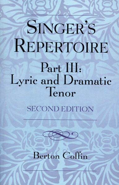Now in paperback! A timeless classic. Includes 8,200 songs in 818 lists for nine voice classifications; indexed by composer, title, vocal range, and publisher. The complete work represents the living song repertoire of today drawn from recital programs, recordings, broadcasts, telecasts, and other sources, and is comprised of Part I: Coloratura, Lyric and Dramatic Soprano, Part II: Mezzo Soprano and Contralto, Part III: Lyric and Dramatic Tenor, and Part IV: Baritone and Bass.