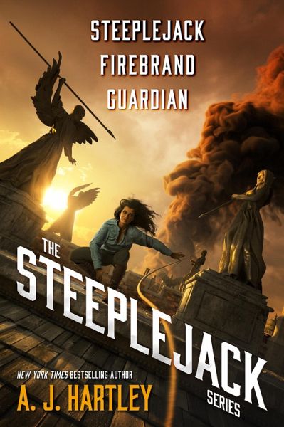 This discounted ebundle includes: Steeplejack, Firebrand, Guardian "A richly realized world, an intensely likable character, and a mystery to die for." - Cory Doctorow, New York Times-bestselling author Thoughtfully imaginative and action-packed, the Steeplejack trilogy by A.J. Hartley is a thrilling young adult series about Anglet Sutonga, a teenager who solves mysteries in the sprawling city of Bar-Selehm, which is part of a 19th-century South African-inspired fantasy world. Steeplejack: Seventeen-year-old Anglet Sutonga lives and works as a steeplejack in Bar-Selehm, a sprawling city known for its great towers, spires, and smokestacks - and even greater social disparities across race and class. Ang's world is turned upside-down when her new apprentice Berrit is murdered the same night that the city's landmark jewel is stolen. As troubles mount in Bar-Selehm, Ang must discover the truth behind both murder and theft soon - or else watch the city descend into chaos. Firebrand: Anglet Sutonga is moving up in the world, helping politician Josiah Willinghouse track down a thief who stole plans for a covert government weapon. Finding him won't be easy, not when the thief has connections to Elitus, the city's most powerful and super-exclusive social club. When someone gets murdered there, things definitely do not get any easier. But more is at stake as the city's recent wave of refugees start to vanish. When Ang connects these two cases, they spark a conflagration of conspiracy which threatens to engulf the city whole. Unless she can stop it. Guardian: This is what Ang knows: A dear friend is accused of murdering the Prime Minister of Bar-Selehm. A mysterious but fatal illness is infecting the poor. A fanatical politician seizes power, unleashing a wave of violent repression over the city. This is what Ang must do: Protect her family. Solve a murder. RESIST, no matter what, before it's too late. At the Publisher's request, this title is being sold without Digital Rights Management Software (DRM) applied.