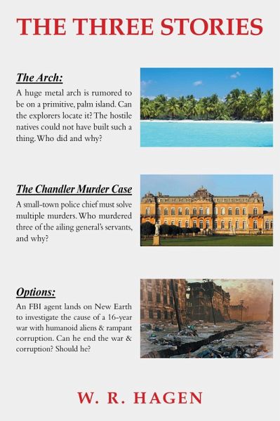THE THREE STORIES The Arch A huge metal arch is rumored to be on a primitive, palm island. Can the explorers locate it? The hostile natives could not have built such a thing. Who did and why? The Chandler Murder Case A small-town police chief must solve multiple murders. Who murdered three of the ailing general's servants, and why? Options: An FBI agent lands on New Earth to investigate the cause of a 16-year war with humanoid aliens & rampant corruption. Can he end the war & corruption? Should he?
