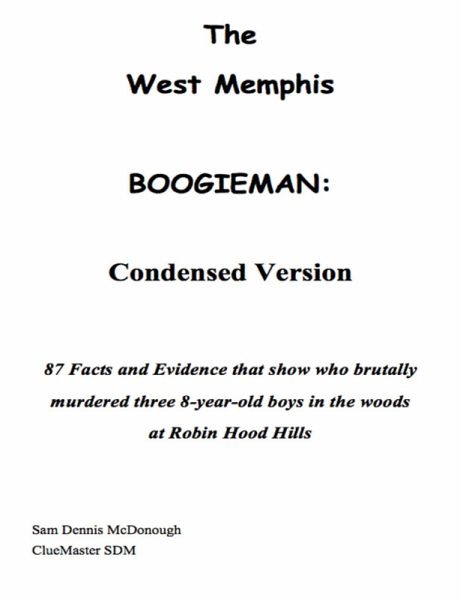 "The West Memphis Boogieman: Condensed Version" lists the same 87 clues as does the full version of "The West Memphis Boogieman" book. Synopsis: "The West Memphis Boogieman" is about justice for three boys and their teen-age killers and the effects of rich and famous celebrity intervention in justice. Who should read "The West Memphis Boogieman": Anyone who is looking for a complete account of the facts and evidence in the crime that sentenced three teen-age boys to life or death? Reason for Reading: "The West Memphis Boogieman" contains 87 important facts and evidence concerning the Arkansas teens who were convicted of murdering three innocent 8-year-old boys in Robin Hood woods in 1993. It also tells how, when and why some celebrities helped to get the guilty men released from prison. Why I wrote this book: My greatest passion is searching for facts and evidence to determine the truth in controversial real crimes.