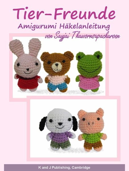 Häkelmuster für 5 kleine süße Tiere: ein kleiner Bär, Ferkel, Frosch, Hund und Hase. Die Tiere sind leicht zu machen. Detaillierte Anweisungen und 11 Bilder helfen Ihnen mit jedem Schritt. Die Tiere sind 7,5 cm hoch (ohne Ohren) Schwierigkeitsgrad: leicht. Erfordert grundlegende Kenntnisse in Häkel-Begriffen. Verwendete Materialien: Häkelnadel Nr. 3, 4-fädiges Garn (weiß,schwarz,lila,grün,natur,braun,hellrosa,blau,rot,rosa,apricot), schwarzes Stickgarn, Polyester-Füllwatte , 10 schwarze 4 mm Perlen, Sticknadel, Nähnadel & Nähgarn.