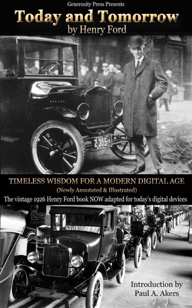 Henry Ford's impact on industry, business, and society continues to drive us to reach for seemingly impossible goals. He turned an automobile into an industry, transformed the world of farming with a tractor, and launched the airplane into a new era of mass production. Ford didn't just revolutionize transportation; he completely transformed the way we work, the way we create, and the way we live. He achieved the impossible equation of improving product quality and reliability while cutting the cost in half, yet often doubling the wages and standard of living for his employees at the same time. Ford also invested in the future by equipping people who had no foreseeable future. That included educating and training orphans and at-risk youth at The Henry Ford School for Boys. This new version of Henry Ford's book Today and Tomorrow features an interview with 88-year-old Phil Morgan. Phil was one of those "e;Ford School Boys"e; who went on to a successful life and career thanks to the famous car maker who built more than just automobiles. Phil is one of the few people still alive who actually knew and was directly helped by Henry Ford himself. Henry Ford's Today and Tomorrow continues that mentoring tradition in true Ford fashion. It's like an assembly line for building success after success and has been churning out great achievers for nearly a century. Ford's vision was to create a timeless reminder that the work ethic and inspiration of his day could be multiplied, molded, and imprinted on the innovative minds of tomorrow. Now you can finally enjoy this newly annotated and illustrated version of the vintage 1926 Henry Ford classic adapted for today's digital devices. Introduced by author, businessman, and internationally recognized expert on lean manufacturing, Paul A. Akers, Today and Tomorrow by Henry Ford is timeless wisdom for a modern digital age.