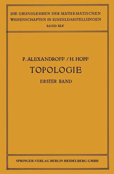 Erster Teil. Grundbegriffe der mengentheoretischen Topologie.- Erstes Kapitel: Topologische und metrische Räume.- Zweites Kapitel: Kompakte Räume.- Zweiter Teil. Topologie der Komplexe.- Drittes Kapitel: Polyeder und ihre Zellenzerlegungen.- Viertes Kapitel: Eckpunkt- und Koeffizientenbereiche.- Fünftes Kapitel: Bettische Gruppen.- Sechstes Kapitel: Zerspaltungen und Unterteilungen von Komplexen.- Siebentes Kapitel: Spezielle Fragen aus der Theorie der Komplexe.- Dritter Teil. Topologische Invarianzsätze und anschließende Begriffsbildungen.- Achtes Kapitel: Simpliziale Approximationen stetiger Abbildungen. Stetige Zyklen.- Neuntes Kapitel: Kanonische Verschiebungen. Nochmals Invarianz der Dimensionszahl und der Bettischen Gruppen. Allgemeiner Dimensionsbegriff.- Zehntes Kapitel: Der Zerlegungssatz für den Euklidischen Raum. Weitere Invarianzsätze.- Vierter Teil. Verschlingungen im Euklidischen Raum. Stetige Abbildungen von Polyedern.- Elftes Kapitel: Verschlingungstheorie. Der Alexandersche Dualitätssatz.- Zwölftes Kapitel: Der Brouwersche Abbildungsgrad. Die Kroneckersche Charakteristik.- Dreizehntes Kapitel: Homotopie- und Erweiterungssätze für Abbildungen.- Vierzehntes Kapitel: Fixpunkte.- Anhang I. Abelsche Gruppen.-
