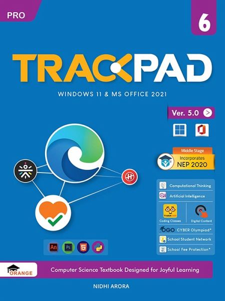 Computer Science Textbook Designed for Joyful Learning KEY FEATURES - National Education Policy 2020 - Find on Google: This section asks a quick question from the present world. - Pure Fact: This presents a 100% pure fact with a numerical data. - Video Based Question: This is an interactive question to be attempted after watching a small video accessible on the QR Code. - Coding Zone: This presents a quick insight into coding concepts. - Career Here: This section indicates the possible career aspects on pursuing similar topics. DESCRIPTION Computers, owing to their extensive usefulness and versatility, continue to pave their path into every business, industry and research activity today. Be it entertainment, education, problem-solving, research and decision-making, or home and personal management, data banks, communication and message services, etc., they have become literally indispensable in our daily operations. This makes thorough education on the subject of computers essential across the world. Trackpad PRO Version 5.0, a computer book series for grades I to VIII, is designed to build a strong foundation for students about to enter the fascinating world of computer technology. With Trackpad, the process of discovery is bound to be equally enjoyable and educational, as the series is written in a friendly and engaging style, which will spark the interest of students of all skill sets. Based on Windows 11 and Microsoft Office 2021, this series has all that is required to ensure that the students understand and retain what they have read. The books ensure up-to-date coverage of contemporary computer concepts and most widely used software packages. The series begin to explore the subject of Artificial Intelligence from grade III itself and each grade has four Periodic Assessments & two Test Sheets for evaluation of students' learning. Grade I and II books have four-line writing space each to inculcate the love for writing and enhance writing skills in children. I would like to gratefully acknowledge the support provided by my family and friends.I sincerely trust that this book will assist the students in their growth and learning. Wish you a happy and fruitful learning! WHAT WILL YOU LEARN You will learn about: - Critical Thinking - Creativity - Communication - Collaboration, Information Literacy - Leadership & Responsibility - Social Interaction, Productivity & Accountability Social Interaction WHO THIS BOOK IS FOR Grade - 6 TABLE OF CONTENTS 1. Fundamentals of Computer 2. Formulas and Functions in Excel 2021 3. Charts in Excel 2021 4. Introduction to Adobe Animate 2021 5. More on Adobe Animate 2021 6. Learn HTML5 and CSS3 7. Formatting a Web Page 8. Internet Services 9. Algorithm, Flowchart and Mind Maps 10. Introduction to Python 11. Intelligence and AI Approaches Techipedia (Microsoft Makecode Arcade) Techipedia (Krita) Project OGO Cyber Sample Questions