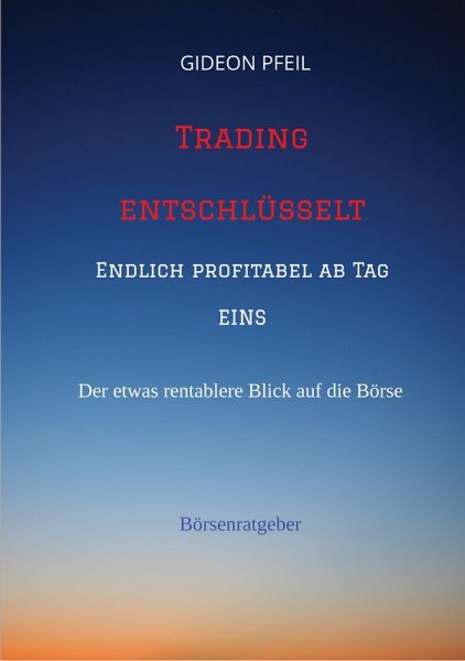 Fast jeder Tader schrottet sein Depot, anstatt kontinuierlich seine Kapitalkurve aufzubauen. Doch jetzt heißt es: GELDMASCHINE anwerfen ab Tag EINS ! Bei jedem HYPE ! Aber auch genauso bei jedem CRASH ! Dieses Buch enthüllt das bislang verborgene Wissen, mit dem jeder Trader bereits ab Tag EINS seines Tradings an den Finanzmärkten profitabel ist. Gideon Pfeil wendet sich in diesem Buch zuallererst an diejenigen Leserinnen und Leser, die im kurzfristigen Trading an den Finanzmärkten erfolgreich sein möchten. Er erklärt darin anhand von ausgewählten Alltagsbeispielen, wie daraus abzuleitende Gesetzmäßigkeiten auch und gerade an der Börse funktionieren. Mit diesen Erkenntnissen hat er eine Methode entwickelt, welche seine Leser befähigt, bereits am ersten Tag ihrer Börsenaktivitäten profitabel zu sein. Ganz nebenbei räumt er dabei auch mit etlichen Börsenmythen auf, die über einige Trader-Generationen hinweg schon finanziell für viel Leid und Schmerz gesorgt haben. Der Autor hat sich der Mission verschrieben, die Trader, die bislang auf der Verliererseite stehen, nicht zuletzt mit der Veröffentlichung seines Handelssystems megawave, ein Kernstück dieses Buches, doch bei weitem nicht das einzige, zu Gewinnern zu machen. "Trading decrypted - Finally profitable from day ONE - The slightly more profitable view of the stock markets" by Gideon Pfeil is not just another book in the stock market literature. It is much more than that. This book probably presents for the first time worldwide previously hidden knowledge in order to turn losers to winners in tading. It is designed as a project that has been startet but never ends. It' s both the program and mission of Gideon Pfeil to accompany his readers on this roadmap to financial success. About Gideon Pfeil Gideon Pfeil is banker. He worked for 36 years in a regional bank. One of his tasks there was the intensive involvement with the financial markets. Along with this, he was soon captived and fascinated by short time trading, also known as daytrading in the specialist literature. This became a passion in his spare time. However, he found the necessary leisure to trade with a professional system in his retirement.