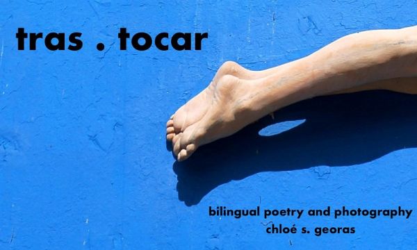 Tras . Tocar, un libro de poesía bilingüe e imágenes de Chloé S. Georas, nos advierte que no hay tacto sin trastocamientos ni roce sin riesgos. La autora define tras . tocar como "alterar el orden que mantienen ciertas cosas o el desarrollo acostumbrado de algo como consecuencia del tacto". Sus versos e imágenes son umbrales a paisajes cotidianos de intimidades apocalípticas, convocándonos a armarnos de vulnerabilidad para enfrentar con irreverencia el sentido común que hornea las violencias del pan nuestro de todos los días.