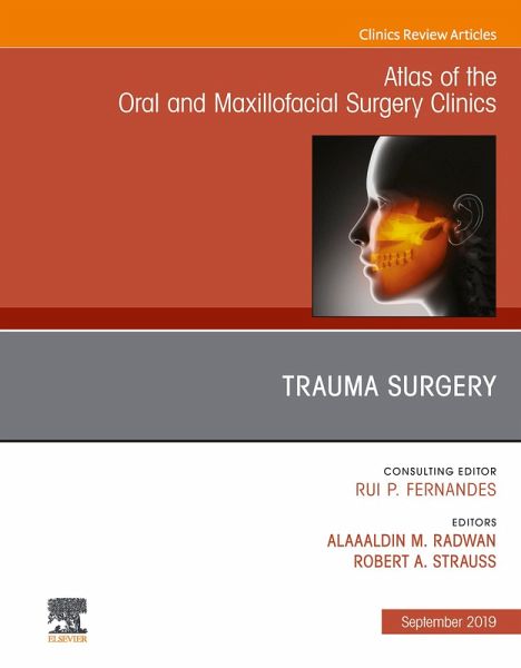 This issue of the Atlas of the Oral and Maxillofacial Surgery Clinics of North America focuses on Trauma Surgery, and is edited by Drs. Robert Strauss and Alaaaldin Radwan. Articles will include: Management of panfacial, NOE and frontal sinus fractures; Management of ballistic injuries in the maxillofacial trauma patient; Management of nasal fractures; Temporomandibular joint trauma; Rigid fixation techniques; Complicated maxillofacial fractures: Pediatric and geriatric; Diagnostic imaging of the maxillofacial trauma patient; Post-traumatic injuries of the trigeminal and facial nerve; Avulsive soft tissue injuries; Virtual surgical planning in maxillofacial trauma; Management of orbital fractures; Traumatic ear injuries; Delaying Soft Tissue Repair; and more!