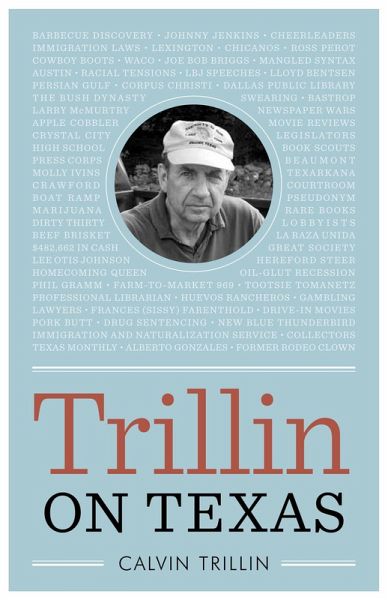 Articles and comic verse about the Lone Star State from the Thurber Prize winner: " What's not to love?" - Texas Monthly Whether reporting for the New Yorker, penning comic verse and political commentary, or writing his memoirs, Calvin Trillin has bumped into Texas again and again. He insists it's not by design-"there has simply been a lot going on in Texas." Astute readers will note, however, that Trillin's family immigrated to America through the port of Galveston, and, after reading this book, many will believe the Lone Star State has somehow imprinted itself on his imagination. Trillin on Texas gathers some of his best writing on subjects near to his heart-politics, true crime, food, and rare books among them-that also have a Texas connection. Indulging his penchant for making "snide and underhanded jokes about respectable public officials," he offers his signature sardonic take on the Bush dynasty and their tendency toward fractured syntax; a faux but quite believable LBJ speech; and wry portraits of assorted Texas county judges, small town sheriffs, and Houston immigration lawyers. He takes us on a pilgrimage to the barbecue joint that Texas Monthly named the best in Texas, and describes scouting for books with Larry McMurtry. He tells the stories of two teenagers who dug up half a million dollars in an ice chest, and of rare book dealer Johnny Jenkins, who was found floating in the Colorado River with a bullet wound in the back of his head. And he recounts how redneck movie reviewer "Joe Bob Briggs" fueled a war between Dallas's daily newspapers and pays tribute to two courageous Texas women who spoke truth to power: Molly Ivins and Sissy Farenthold. Sure to entertain both Texans and non-Texans, Trillin on Texas proves again that Trillin is one of America's shrewdest and wittiest observers.