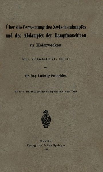 I. Allgemeines.- Die Wirtschaftlichkeit der Abdampfverwertung.- Verwendung des Dampfes zur Beheizung von Wohnräumen.- Verwendung des Dampfes zu gewerblichen Zwecken.- Die Verbrennungsmotoren als Kraft-Heizungsmaschinen.- II. Dampf- und Wärmeverbrauch einer Verbundmaschine bei verschiedenen Belastungen und steigender Zwischendampfentnahme von 5 Atm. abs. Spannung.- Zeichnung der Dampf diagramme.- Der Exponent n der Expansionskurve p. vn.- Die Lage des Sättigungspunktes auf der Expansionskurve 28 v-t-Tafel für Wasserdampf nach der Zustandsgieichung von Battelli-Tumlirz.- Dampf- und wärmeökonomische Betrachtungen.- Berechnung des Dampfverbrauches.- Tabelle der spez. Wärme cp des Wasserdampfes nach Knoblauch und Jakob.- Der Dampfzustand im Punkte "Voraustritt".- Abhängigkeit des Dampfverbrauches von der Höhe der Zwischendampfentnahme bei verschiedenen Belastungen der Maschine.- Wärmebilanz der Maschine mit Zwischendampfentnahme und Abdampfverwertung bei verschiedenen Belastungen.- Der effektive thermische Wirkungsgrad der Kraft-Heizungsanlage.- III. Dampf- und Wärmeverbrauch einer Verbundmaschine bei konstanter Belastung und steigender Zwischendampfentnahme von 2 bis 5 Atm. abs. Spannung.- Zeichnung der Dampfdiagramme.- Dampf- und wärmeökonomische Betrachtungen 49 Abhängigkeit des Dampfverbrauches von der Höhe der Zwischendampfentnahme bei verschiedenen Zwischendampfspannungen.- Wärmebilanz der Maschine mit Zwischendampfentnahme und Abdampfverwertung bei verschiedenen Zwischendampfspannungen.- IV. Das Verhalten einer Maschine mit Zwischendampfentnahme ohne Abdampfverwertung in dampf- und wärmeökonomischer Beziehung.- Berechnung des Dampfverbrauches.- Abhängigkeit des Dampfverbrauches von der Belastung der Maschine und von der Höhe derZwischendampfspannung bei verschiedener Zwischendampfentnahme.- Wärmebilanz der Maschine mit Zwisehendampfentnahme ohne Abdampfverwertung bei verschiedenen Belastungen und Zwischendampfspannungen.- Verbesserung des indizierten thermischen Wirkungsgrades durch die Zwischendampfentnahme.- V. Kolbenmaschine und Dampfturbine als Kraft-Heizungsmaschine.- VI. Beispiel einer Kraft-Heizungsanlage.- Verlauf des Wärmebedarfs, der Leistung und des Dampfverbrauches an Mittelwertstagen der zwölf Monate.- Die Belastung der Anlage an Mittelwertstagen der zwölf Monate.- Die wirtschaftliche Ausnützung der Anlage.- Der jährliche Verlauf von Wärmebedarf, Leistung und Dampfverbrauch, nach Monaten geordnet.- Der jährliche Verlauf von Wärmebedarf, Leistung und Dampfverbrauch, nach der Größe geordnet.- Die Kosten der Krafterzeugung in der Kraft-Heizungsanlage.