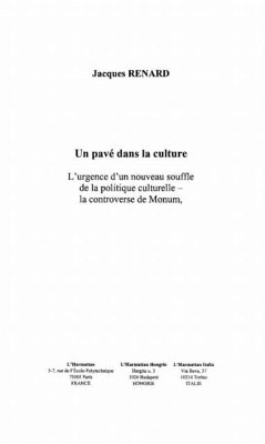 Jacques Renard, haut fonctionnaire engage dans la culture depuis trente ans, propose, a partir de son experience personnelle, un examen de l'etat present de la politique culturelle et du ministere de la culture. "e;Un pave dans la culture"e; est un cri d'alarme soulignant l'absence de dessein du ministere de la culture, les difficultes a accueillir l'innovation, une administration fatiguee, cloisonnee, une atonie de l'Etat alors que le monde culturel ne cesse d'evoluer. L'auteur apelle de ses voeux la relance de la politique culturelle. Il en explore les pistes et en dessine les orientations.