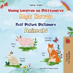 Tagalog English Bilingual children's book. Perfect for kids learning English or Tagalog as their second language. Discover the wonderful world of animals with this picture dictionary. Perfect for children ages 4 to 8, this book introduces a wide variety of animalsfrom lions and giraffes to frogs, parrots, and even unicorns. Each page groups animals by where they live or how they behave, making learning fun and easy to follow. Kids will explore animal names from all around the worldfrom jungles and oceans to farms and snowy lands. Each animal is shown with a colorful picture to help children recognize and remember new words. The book also includes fun facts about animals! This book includes: • Over 150 animals and insects • Colorful illustrations for every word • Animal groups like pets, wild animals, farm animals, and magical creatures • A special section about animal babies and magical creatures • Fun facts that make learning exciting Perfect for little learners at home, in school, or during story time. Tuklasin ang kahanga-hangang mundo ng mga hayop gamit ang larawan sa diksyunaryong ito. Perpekto para sa mga batang edad 4 hanggang 8, ipinapakilala ng aklat na ito ang iba't ibang uri ng hayopmula leon at giraffe hanggang palaka, loro, at kahit unicorn. Ang bawat pahina ay nag-uuri ng mga hayop ayon sa kanilang tirahan o pag-uugali, kaya masaya at madaling matutuhan. Tuklasin ng mga bata ang mga pangalan ng hayop mula sa iba't ibang panig ng mundomula sa gubat at karagatan hanggang sa bukid at nyebe. Ipinapakita ang bawat hayop gamit ang makukulay na larawan upang matulungan ang mga bata na makilala at maalala ang mga bagong salita. May kasamang masayang mga kaalaman tungkol sa mga hayop ang aklat! Kasama sa aklat na ito ang: • Mahigit 150 na hayop at insekto • Makukulay na larawan para sa bawat salita • Mga grupo ng hayop tulad ng alagang hayop, mababangis na hayop, hayop sa bukid, at mahikang nilalang • Isang espesyal na bahagi tungkol sa mga sanggol ng hayop at mahikang mga nilalang • Masasayang kaalaman na ginagawang kapana-panabik ang pagkatuto Perpekto para sa mga batang nag-aaral sa bahay, sa paaralan, o tuwing oras ng kwento.