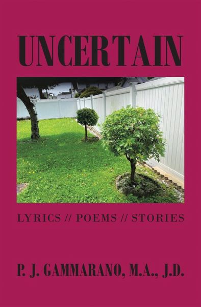 You`ll find all original short stories and poetic tales suitable as musical lyrics. Some items were written as far back at the 1970's! The otherwise non-descript book cover photograph depicts two "American Banzai" trees (NYC) which are from 1986, so that's 35 years ago ! If left to grow freely, this vegetation would grow to be much higher & larger than even the other tree in the background. Each tree is about 4.5 feet tall, and has been trimmed periodically since these were mere twigs. The "lesson" here is that we humans can 'control' to an extent, but nature per se remains as the overarching & "uncertain" factor.…mehr