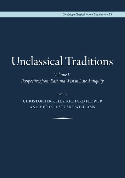 Unclassical Traditions. Volume II: Perspectives from East and West in Late Antiquity is the second of two collections of essays by leading scholars discussing the nature and extent of the late-antique engagement with the classical past. Rather than concentrating on developments at the centre of empire (the focus of a previous volume, Unclassical Traditions I ), the aim here is to present a set of views from the margins: social, political, religious, literary, geographical and linguistic. Ranging from Armenian ecclesiastical histories, Egyptian alchemy and Jewish power politics, across the Mediterranean to the challenges raised by shifting circumstances in 5th-century North Africa and Ostrogothic Italy, the eight papers in this volume seek to establish the persistent importance of the classical tradition throughout a broadly defined late antiquity. Despite the divergent forms taken by these various responses, they are united by a common preoccupation with that still authoritative past. From these eastern and western perspectives - often peripheral and sometimes isolated - the classical past appears neither monolithic nor inflexible but as offering a set of assumptions or conventions that might be opposed or accepted, subverted or ignored or reworked into a striking variety of newly imagined worlds. Like its predecessor, this volume will be of interest to anyone concerned with the history, literature and culture of the later Roman empire. It stems from an international conference held in Cambridge in 2009, generously supported by the Faculty of Classics and the Henry Arthur Thomas Fund.