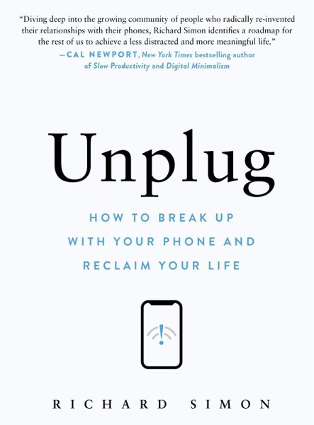 Turn off your phone and turn on your life with step-by-step instructions and success stories from dozens of people who've set healthy boundaries with their devices. The average American spends the equivalent of a full 60 days a year looking at their phone. It can become an all-consuming addiction that puts a strain on virtually every facet of our existence from the way we sleep, eat, and exercise to our ability to focus and make new memories. Most importantly, it takes us away from our lives, our relationships, and the real world. But although it may seem impossible, there is always a way to overcome digital distraction: you can always turn off your phone. In Unplug, Richard Simon lays out a plan to detox from your phone, including different breakup styles, things to do with your newfound time, lightly reintegrating a smartphone into your life, and finally, helping others quit. These tips and strategies are interspersed with success stories, including Simon's own story of turning off his phone for a whole year, plus those of 29 others, including a professional baseball player (Nick Castellanos), bestselling authors on digital usage and addiction (Cal Newport and Ed Spector, respectively), physicians who specialize in digital wellness, as well as ordinary folks including a principal, a pastor, and a couple who quit their phones together.