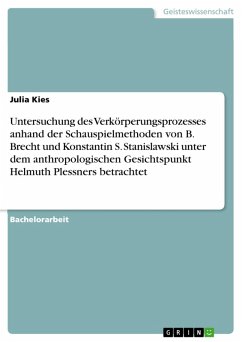 Bachelorarbeit aus dem Jahr 2009 im Fachbereich Theaterwissenschaft, Tanz, Note: 2,0, Freie Universität Berlin (Institut für Theaterwissenschaft), Sprache: Deutsch, Abstract: "Der Schauspieler stellt Menschen dar. Ein Mensch verkörpert einen anderen."1 Diese Worte Helmuth Plessners deuten darauf hin, dass lediglich Menschen die Fähigkeit vorbehalten ist, andere Artgenossen nachzuahmen und sie glaubhaft darzustellen. Bereits in der Antike weist Aristoteles darauf hin, dass "das Nachahmen selbst dem Menschen angeboren ist."2 Der griechische Philosoph führt den Mimesisbegriff ein, der jedoch laut Christoph Wulf "nicht nur nachahmen, sondern auch "sich ähnlich machen", "zur Darstellung bringen", "ausdrücken"3 bedeutet. Christoph Wulf weist außerdem darauf hin, dass man den Begriff der Mimesis nicht nur in der Kunst vorfinden kann: "Die mimetische Fähigkeit spielt in annähernd allen Bereichen menschlichen Handelns, Vorstellens, Sprechens und Denkens eine Rolle."4 Zusätzlich betont Christoph Wulf die Tatsache, dass man nicht nur das Bekannte und Vertraute nachahmt, sondern auch eine Art Vorahmung des Unbekannten und Fremden entwickeln kann, wie es z. B bei der "Darstellung eines Mythos" der Fall ist. Dabei wird "etwas ausgedrückt oder zur Darstellung gebracht, wofür es noch kein unmittelbares Vorbild in der Realität gibt."5 Somit wird die Nachahmung gegenüber dem bloßen Kopieren in der Kunst aufgewertet. Wie funktioniert die Nachahmung, die bei dem Prozess der Verkörperung von großer Bedeutung ist? Laut Helmuth Plessner ist dafür eine gewisse Distanz zu sich selbst erforderlich. Diese nennt er die exzentrische Positionalität. Der Mensch verlässt seine Mitte und ist in der Lage, sich mit den Augen des anderen zu sehen. Durch diese "Abständigkeit" vermag der Mensch und somit auch der Schauspieler, sich immer wieder neue Vorstellungen von sich zu machen.6