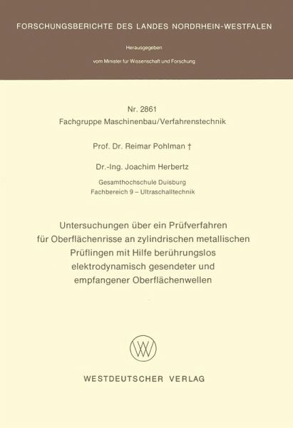 Untersuchungen über ein Prüfverfahren für Oberflächenrisse an zylindrischen metallischen Prüflingen mit Hilfe berührungslos elektrodynamisch gesendeter und empfangener Oberflächenwellen (eBook, PDF)