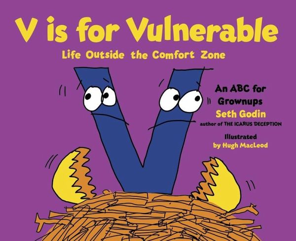 V is for Vulnerable looks and feels like a classic picture book. But it's not for kids, it's for hardworking adults. It highlights twenty-six of Seth Godin's principles about treating your work as a form of art, with illustrations by acclaimed cartoonist Hugh MacLeod. A sample: