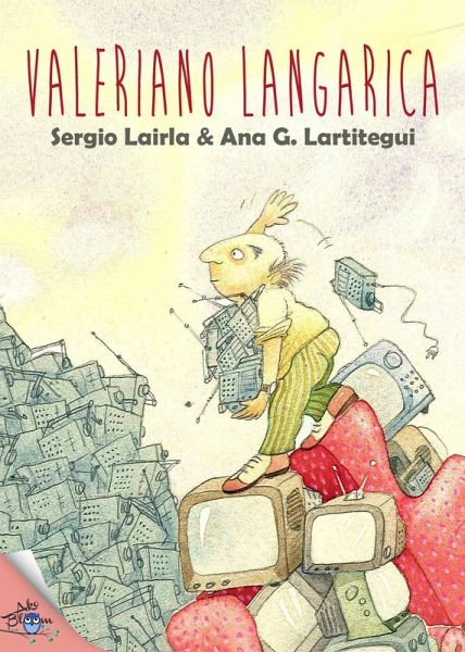 Valeriano Langarica. La enfermedad incurable de un comprador insaciable: Valeriano Langarica es un hombre bastante probable pero desafortunado: no puede dejar de comprar y acumular sin lograr jamás satisfacción, es decir, reposo y calma, contento y dicha. Sometido al sino de los tiempos del usar y tirar, su vida es un frenesí mercantil sin otro fruto que el continuo goce del mercadeo mas sin el placer del aprovechamiento de las cosas adquiridas. Representación metafórica de una época ofrendada al señorío del máximo lucro al menor plazo, construida en cuartetas, de Sergio Lairla, e imágenes de gran potencia gráfica, muy expresivas, de Ana González Lartitegui. Para lectores de 8 años en adelante.