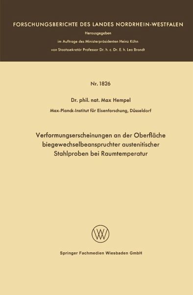 Max Hempel Verformungserscheinungen an der Oberfläche biegewechselbeanspruchter austenitischer Stahlproben bei Raumtemperatur (eBook, PDF)