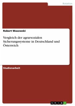 Studienarbeit aus dem Jahr 2009 im Fachbereich Organisation und Verwaltung - Sonstiges, Note: 1, Universität Kassel, Veranstaltung: Verwaltung in ausgewählten Staaten, Sprache: Deutsch, Abstract: Diese Hausarbeit beschreibt die Gemeinsamkeiten und Unterschiede zwischen der Landwirtschaftlichen Sozialversicherung in Deutschland und der Sozialversicherungsanstalt der Bauern in Österreich. Deutschland verfügt, neben einigen weiteren europäischen Staaten, über ein speziell auf die Bedürfnisse der Landwirte zugeschnittenes System der Landwirtschaftlichen Sozialversicherung (LSV). Während in der allgemeinen Sozialversicherung sich die Folgen des demografischen Wandels allmählich einstellen, hat die LSV bereits mit den Folgen des Strukturwandels zu kämpfen. Dieses Ungleichgewicht zwischen Beitragszahlern und Leistungsbeziehern wird durch Bundeszuschüsse ausgeglichen, um die erforderliche Kostendeckung zu gewährleisten. Es stellt sich daher die Frage, wie diesem Problem in Ländern mit agrarsozialen Sicherungssystemen und ähnlicher Betriebsstruktur begegnet wird. Für diesen Vergleich eignet sich der Blick nach Österreich, dessen Agrarbereich eine ähnliche Struktur aufweist wie der süddeutsche Raum. Gegenstand dieser Hausarbeit ist der Vergleich der LSV in Deutschland mit der Sozialversicherungsanstalt der Bauern (SVB) in Österreich.