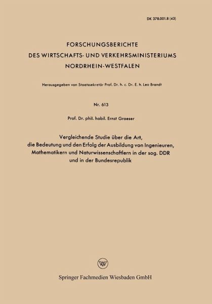 Vergleichende Studie über die Art, die Bedeutung und den Erfolg der Ausbildung von Ingenieuren, Mathematikern und Naturwissenschaftlern in der sog. DDR und in der Bundesrepublik (eBook, PDF)
