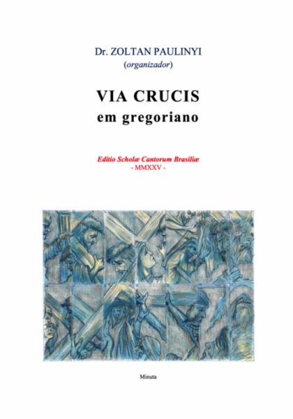 Este livro compila as orações cantadas para as 15 estações da Via Sacra, Via Crucis, conforme tradição vaticana. Inclui partituras gregorianas de "In nome Patris", "Stabat Mater Dolorosa", "Adoramus Te", "Pater Noster", "Crux Fidelis" e leituras bíblicas em latim correspondentes a cada estação.