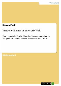 Diplomarbeit aus dem Jahr 2008 im Fachbereich BWL - Offline-Marketing und Online-Marketing, Note: 1,3, Fachhochschule Trier - Hochschule für Wirtschaft, Technik und Gestaltung, Sprache: Deutsch, Abstract: Virtuelle Events - eines der Schlagwörter unserer Zeit. Die Erlebnisorientierung ist in der heutigen multimedialen Gesellschaft nicht mehr wegzudenken. Eventveranstaltungen sind im Laufe der Geschichte zu einem bedeutungsvollen Marketinginstrument herangewachsen und bahnen sich jetzt unaufhaltsam ihren Weg in die virtuellen Welten des World Wide Webs. Die digitale Revolution des Internets macht es möglich und hat in Bezug auf Events einen neuen Bereich entwickelt, bei dem man auch von zu Hause die Chance hat an Events teilzunehmen, die man möglicherweise im realen Leben wegen fehlender finanzieller Mittel oder aus Zeitgründen nicht besuchen könnte. Mit dem Anbieten von virtuellen Events betreten viele Unternehmen Neuland, da sich dieses digitale Medium noch in den Kinderschuhen befindet und bisher nicht alle Kriterien herauskristallisiert wurden, die für einen Besucher einer solchen Veranstaltung vom Anbieter erfüllt werden sollten. Die durchgeführte Umfrage unter den Usern der Entertainmentplattform und 3D Welt sMeet soll Licht ins Dunkel bringen. Diese Diplomarbeit ist gedanklich in zwei große Bereiche unterteilt. Der erste Teil beschäftigt sich mit den der Arbeit zugrunde liegenden Definitionen im Eventbereich, der digitalen Revolution, der Vorstellung der neuartigen und innovativen Entertainmentplattform sMeet sowie ihrer individuellen virtuellen Eventmöglichkeiten, die zum Verständnis und als Grundlage für den weiteren Forschungsteil benötigt werden. Dementsprechend gehört der zweite große Bereich der empirischen Forschung. Das Erleben eines virtuellen Events wird von jedem User individuell und unterschiedlich wahrgenommen. Über diese verschiedenen Aspekte existieren für reale Events unzählige Bücher und Studien. Für den virtuellen Eventbereich hingegen ist hier die Auswahl sehr begrenzt, um ehrlich zu sein gibt es fast keine. Im Auftrag der sMeet Communications GmbH wurde deshalb im Rahmen dieser Arbeit eine Studie mit dem Thema "Virtuelle Events in einer 3D Welt - Eine empirische Studie über das Nutzungsverhalten in Kooperation mit der sMeet Communications GmbH" durchgeführt. Ziel dieser Arbeit ist es, die allgemeinen Erwartungen der sMeet-User beim Besuch eines virtuellen Events zu ermitteln und die Wichtigkeit verschiedener Teilaspekte beim Besuch einer virtuellen Eventveranstaltung herauszufiltern.