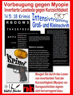 Immer öfter sitzen wir vor dem Computerbildschirm, statt in die Natur zu gehen. Die Kurzsichtigkeit nimmt weltweit stark zu. Natürlich gibt es weitere Gründe. Auch das Lesen von Büchern begünstigt die Myopie. Es gibt zwei Zelltypen, die reagieren, wenn die Mitte des Sehfeldes dunkler ist als der Randbereich... und umgekehrt. Bei einem Spaziergang in der Natur werden beide Zelltypen reagieren. Beim Lesen auf dem Bildschirm oder eines Buches wird nur ein Typ der Zellen aktiviert. Das Augapfel-Wachstum wird gefördert, was in einer zukünftigen Kurzsichtigkeit enden kann. Weiße Schrift auf schwarzem Hintergrund kann dem Augapfel-Wachstum entgegenwirken. In diesem Buch wird zusätzlich noch die Sehschärfe durch größere bis zu kleineren Buchstaben trainiert.