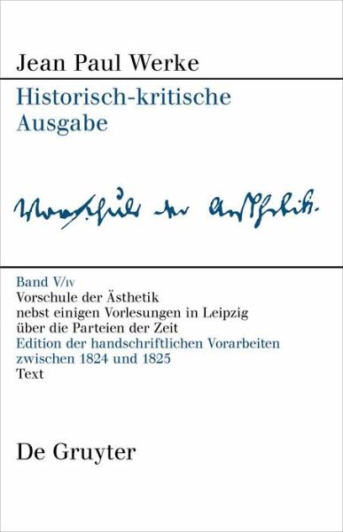 Für seine "Vorschule der Aesthetik" (1804 und 1813) und deren spät veröffentlichte Erweiterung "Kleine Nachschule zur ästhetischen Vorschule" (1825) hat sich Jean Paul etlicher seiner Notatsammlungen bedient, die er zeitlebens führte und erweiterte. Seine "Bemerkungen über uns närrische Menschen", seine "Gedankenhefte" und seine Briefkopierbücher, insbesondere aber natürlich seine "Philosophischen und Ästhetischen Untersuchungen" und seine "Exzerpte" waren Ausgangspunkt des Schaffens an seiner großen kunsttheoretischen Schrift. Die vorliegende Edition präsentiert erstmals sämtliche handschriftliche Vorarbeiten inklusive der Lesarten und stellt für zwei der Vorarbeitenhefte aufgrund neuer Erkenntnisse die ursprüngliche Reihenfolge wieder her. Den Abschluss der Edition bildet eine für Jean Paul sehr seltene Vorstufe des Druckmanuskripts zur "Kleinen Nachschule zur ästhetischen Vorschule", die dem Leser einen unmittelbaren Einblick in die Werkstatt des Autors bietet.