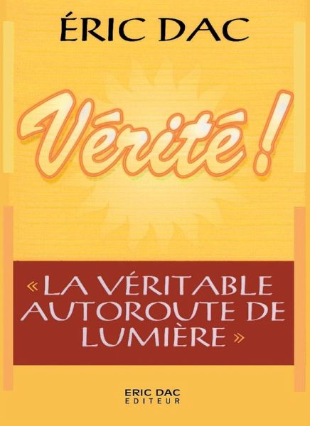 Aucun précédent ! Du jamais lu ! Du jamais vu ! Ce livre s'adresse en priorité à tous ceux et à toutes celles qui aspirent à la Sincérité. A tous ceux qui, usés de courir de guides en maîtres, de lectures en séminaires, recherchent la Voie Rapide qui mène au seul et unique but : Celui auquel l'humanité aspire depuis la nuit des temps ! L'auteur de ce livre, Eric Dac, vous met face à vos responsabilités. Il vous engage emprunter la seule voie possible. Et cette voie est une véritable autoroute de Lumière. Des clés totalement inédites, des clés secrètes d'une puissance insoupçonnée, ciselées au millimètre près, vont éveiller le formidable potentiel qui sommeille dans votre corps et dans votre esprit. A peine aurez-vous lu les premières pages, que vous découvrirez déjà comment très facilement percevoir l'aura (l'aura est un halo énergétique qui entoure le corps humain). Rien que pour cette simple expérience, ce livre vaut son pesant d'or initiatique. Mais il y a beaucoup plus La Lumière de Dieu que vous canaliserez vous accompagnera à chaque instant de votre vie, dans chacune de vos démarches. •Elle dévoilera devant vos yeux émerveillés ce que sont les véritables offrandes magiques. •Elle réactivera votre corps et l'harmonisera en vue d'un équilibre parfait. 'Elle opérera le rachat de votre âme (une âme pure vaut tout l'or du monde). •Elle guérira de tous les maux votre esprit, votre corps et votre mental. Cette guérison spirituelle opérée grâce à la Lumière Divine agit sur des plans et des niveaux extrêmement subtils. 'Elle élargira votre champ de conscience et vous permettra de ressentir pleinement chacune de vos actions. 'Elle vous protégera, vous et tous ceux qui vous sont chers (pour cela, une seule technique, mais mille fois plus efficace que tout ce qu'il vous a été donné de connaître •Elle ouvrira vos centres énergétiques (chakras) et vous permettra d'accéder à l'illumination. Simple, lumineux, évident, Vérité !, le livre d'Eric Dac deviendra sans aucun doute la Bible du troisième millénaire. Il mettra fin à tous vos doutes. Profitez donc de ce miracle qui va vous permettre de vivre éternellement dans la Lumière et dans l'Amour. Suivez vous aussi le chemin qui mène à la Vérité (avec un grand " V ")