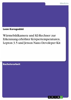 Bachelorarbeit aus dem Jahr 2021 im Fachbereich Medizin - Sonstiges, Note: 1,6, , Sprache: Deutsch, Abstract: In dieser wissenschaftlichen Arbeit wird eine Wärmebildkamera (Lepton 3.5) an einen KI Rechner (Jetson Nano Devoleper Kit) angeschlossen und so programmiert, dass bei erhöhten Körpertemperaturen ein Alarm ausgegeben wird. In den letzten Monaten hat das Coronavirus die gesamte Welt stark getroffen und das Leben vieler Menschen massiv eingeschränkt. Zur Eindämmung des massiven Anstiegs des Coronavirus gehört eine frühzeitige Erkennung von Symptomen wie Fieber, Husten, Schnupfen und Geruchs- und Geschmacksstörungen. Da Symptome wie Fieber nicht direkt zu erkennen sind, werden in vielen Einrichtungen Fiebermessungen durchgeführt, um mögliche Infektionen mit dem Coronavirus zu verhindern. Damit dieser Vorgang kontaktlos durchgeführt werden kann, soll in dieser Arbeit eine Software für den Jetson Nano und der Flir Lepton 3.5 Kamera geschrieben werden, um mit Wärmebildkameras Oberflächentemperaturen von Menschen zu bestimmen und bei erhöhter Körpertemperatur von 37 eine Warnung auszugeben. Wärmebildkameras empfangen Infrarotstrahlung, die als ein Bild wiedergegeben werden. Sie beruhen auf dem Prinzip der Thermografie. Es handelt sich dabei, um ein bildgebendes Verfahren, bei der die von Objekten ausgestrahlte Wärmestrahlung für das menschliche Auge sichtbar gemacht wird. In dieser Arbeit soll aufgezeigt werden, dass die Lepton 3.5 Kamera ein geeignetes Messinstrument ist, um Oberflächentemperaturen des Menschen frühzeitig zu erkennen, um weitere Infektion zu vermeiden. Dies soll mithilfe einer "Github Repository" realisiert werden, die auf einen KI-Rechner geschrieben wird. Am Ende soll die Kamera durch eine Messung auf ihre Brauchbarkeit hin überprüft werden.