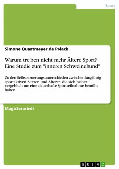Magisterarbeit aus dem Jahr 2007 im Fachbereich Sport - Sportpsychologie, Note: 1,1, Rheinische Friedrich-Wilhelms-Universität Bonn, Sprache: Deutsch, Abstract: Viele Ältere möchten dauerhaft sportlich aktiv sein, aber nur wenige sind langfristig erfolgreich. Forscher vermuten, dass Defizite in der Selbstregulation eine kontinuierliche und regelmäßige Sportteilnahme verhindern. Diese Annahme wurde vor dem Hintergrund der Persönlichkeits-System-Interaktions-Theorie von Kuhl (2001) untersucht. Für die Experimentalgruppe (N = 39) wurden Ältere rekrutiert, die Sport treiben wollten, denen aber die langfristige Sportteilnahme Probleme bereitete. Die Kontrollgruppe (N = 47) bildeten Teil-nehmer aus Alterssportgruppen. Für das Ex-post-Design wurden Stichprobenpaare (N = 35) nach soziodemografischen Merkmalen einander zugeordnet. Die Teilprozesse der Selbststeuerung er-fasste das Selbststeuerungsinventar und der Fragebogen zur Handlungskontrolle (beide von Kuhl). Des Weiteren erhoben wurde die Absichtsstärke und die körperliche Rollenfunktion im Alltag. Die aktuelle Sportaktivität und die Sporterfahrungen im Lebens-lauf wurden per Leitfadeninterview erfragt. Aufgrund der Annahme, dass langjährige Sporttreibende über eine bessere Selbststeuerung verfügen als Sportreibende mit Schwierigkeiten, wurde eine einseitige Testung vorgenommen. Nach dieser Studie gehen gute Selbststeuerungsstrategien und eine Neigung zur prospektiven Handlungsorientierung mit einer Realisierung von Sportaktivität im Alter einher. Eine gezielte Förderung der Selbststeuerungskompetenzen könnte dazu beitragen, dass Ältere in ihren Wunsch nach dauerhafter Sportaktivität erfolgreicher sind.