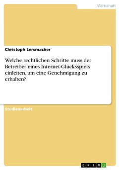 Studienarbeit aus dem Jahr 2005 im Fachbereich BWL - Recht, Note: 2,3, Universität Paderborn, Veranstaltung: Multimedia- und Computerrecht, Sprache: Deutsch, Abstract: Das Veranstalten von Glücksspiel, Wetten und Lotterien ist in den letzten Jahren er-heblich angestiegen und hat sich zu einem beachtlichen wirtschaftlichen Faktor entwickelt. Weltweit werden jährlich mehr als 1000 Mrd. EUR über Glücksspiel umgesetzt. Dabei erhöhte sich vor allem die Teilnahme an Glücksspielveranstaltungen per Internet drastisch auf mittlerweile über 32 Mrd. EUR pro Jahr. Inzwischen bieten mehr als 600 verschiedene Websites Glücksspiele und Wetten via Internet an. Das Versanstalten von und das Teilnehmen an Glücksspielen wird vom Strafgesetz-buch in den §§ 284, 285 und 287 unter Strafe gestellt, sofern nicht eine behördliche Genehmigung erteilt worden ist. Das gewerbliche Spiel nach § 33c GewO, welches Geldspiele mit geringem Vermögensverlustrisiko erlaubt, stellt eine weitere Ausnahme davon dar. Jede Glücksspielveranstaltung, die in Deutschland durchgeführt wird, unterliegt der Erlaubnispflicht. Um legales Glücksspiel im Internet anzubieten, muss der Veranstal-ter allen Anforderungen der Bundesländer nachkommen und durch sein System sicher-stellen, dass diese auch erfüllt werden. Das Glücksspiel- und Lotterierecht ist Ländersache, deshalb benötigt der Anbieter im Internet per se die Genehmigung von jedem einzelnen Bundesland. Bisher wurde in keinem Bundesland eine Genehmigung für private Anbieter von Glücksspielen gewährt. Das resultiert daraus, dass jedes Land Gesetze hat, die zum Teil staatliche Glücksspielmonopole beinhalten, und es an Regelungen mangelt, die die Erteilung einer Konzession an private Anbieter gestatten würde. Angesichts der neuesten Rechtssprechung des EuGH ist es fraglich, ob diese Anwendung in Zukunft beibehalten werden kann. Das Internet als weltumfassendes Medium bietet ausländischen Glücksspielanbietern die Gelegenheit, auch deutsche Teilnehmer dafür zu gewinnen. Ob und in welchem Umfang die Veranstaltung von Internet-Glücksspielen und Lotterien - auch aus dem Ausland - einer Genehmigungspflicht unterliegt, welche rechtlichen Schritte eingeleitet werden müssen um eine solche Erlaubnis zu bekommen und welche Rechtsfolgen ein Verstoß mit sich bringt, soll in dieser Hausarbeit erörtert werden.