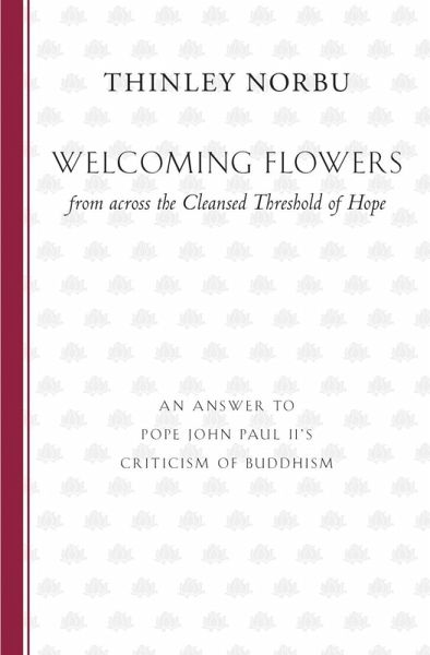 Welcoming Flowers is a pointed critique of the Buddhism chapter of Pope John Paul II's 1994 best seller, Crossing the Threshold of Hope, written by the highly respected Buddhist teacher Thinley Norbu. In responding to the false charges of Buddhists' indifference to the world and rejection of reality, Norbu clarifies the Buddhist doctrines of detachment and enlightenment. In addition, he covers the topics of good and evil, human nature, karma, cosmology, and dualistic mind, bringing them into conversation with the Christian perspective as presented by the Pope. Norbu's approach is not to shoot back arrows in attack of Catholicism but to spread "welcoming flowers"that is, to present the exalted teachings of the Buddha in all their loveliness. In this sense, the book serves as a helpful introduction to the Buddhist worldview.