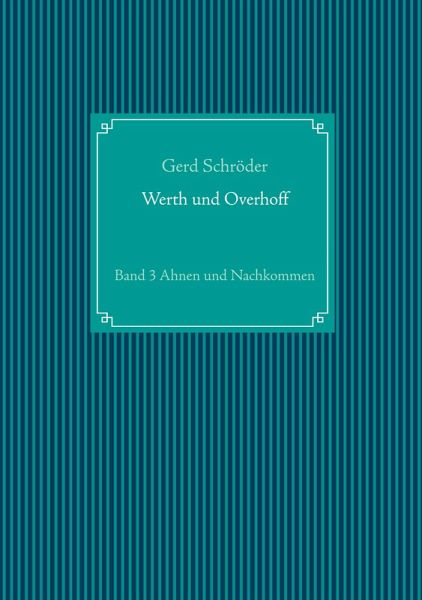 Der vorliegende Band 3 der Reihe Werth und Overhoff beinhaltet Ahnentafeln, Urkunden, Daten und Bilder meiner Vorfahren aus den Familien Werth und Overhoff. Es sind unter anderem die Daten aus den Tagebüchern in den Bänden 1 und 2 eingeflossen; aber auch die Sammlungen von Pfarrer Heinrich Keppler und von Gerold Overhoff sowie die Unterlagen meiner Mutter Dr. Erika Schröder. Zusammengefasst ergibt das eine umfassende Datensammlung über die Familien Werth und Overhoff.